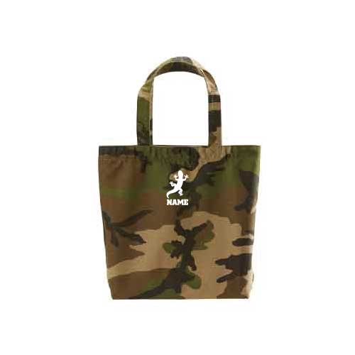 「ヤモリ」名入れ迷彩トートバッグMサイズ/キャンバス地 名入れギフト ウッドランド カモフラ カモフラージュ 柄物 ミニトート 通勤 通学 手提げカバン 【1508-01】トカゲ 蜥蜴 爬虫類